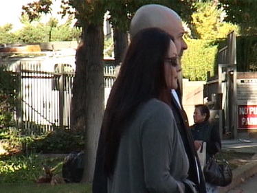 Kelly Soo Park and her husband, Tom Chronister, keep perfect step with one another as they walk hand in hand up W. Temple Street in Downtown Los Angeles after court on Tuesday.