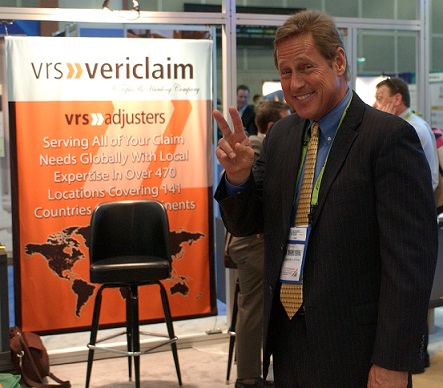 This representative gives the global peace sign in front of the vrs adjusters-VeriClaim booth at the RIMS Conference in L.A. in 2013. Sedgwick is soon to be the proud owner of vrs-VeriClaim, making it a worldwide corporation. Photo copyright Lonce LaMon and adjustercom; all rights reserved.