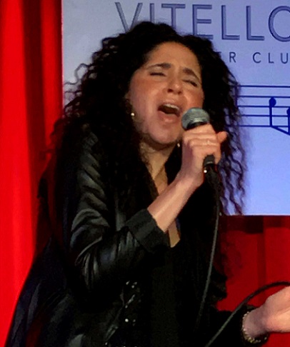 Katrina Woolverton singing at Vitello's in 2018. photo by Lonce Lamonte, all rights reserved